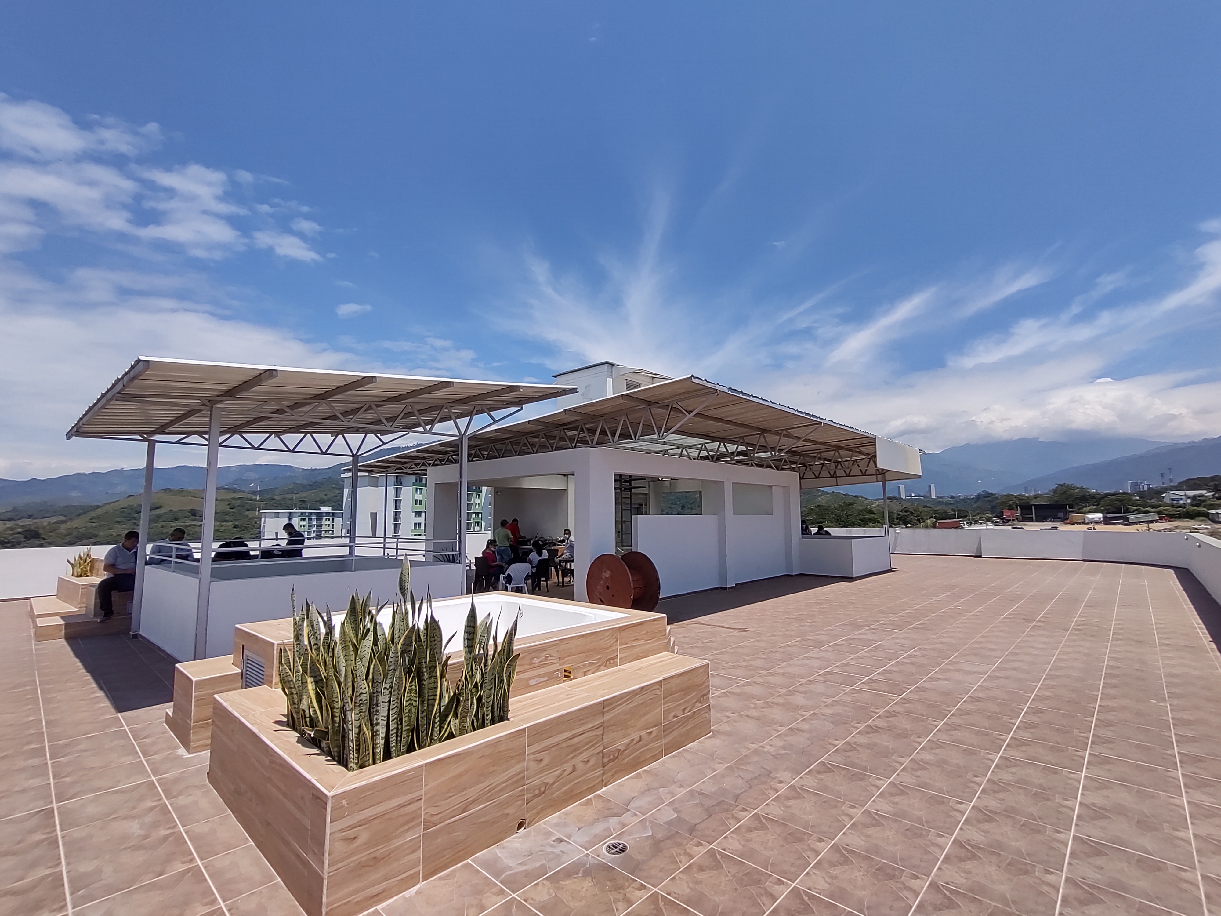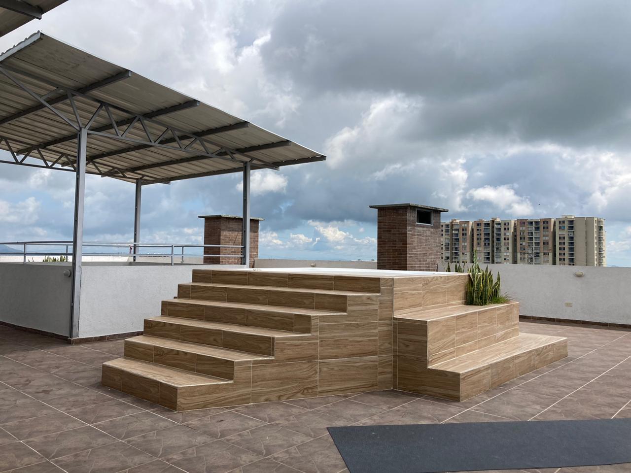con vista panorámica, zona de BBQ, jacuzzis y portería con ingreso biométrico.